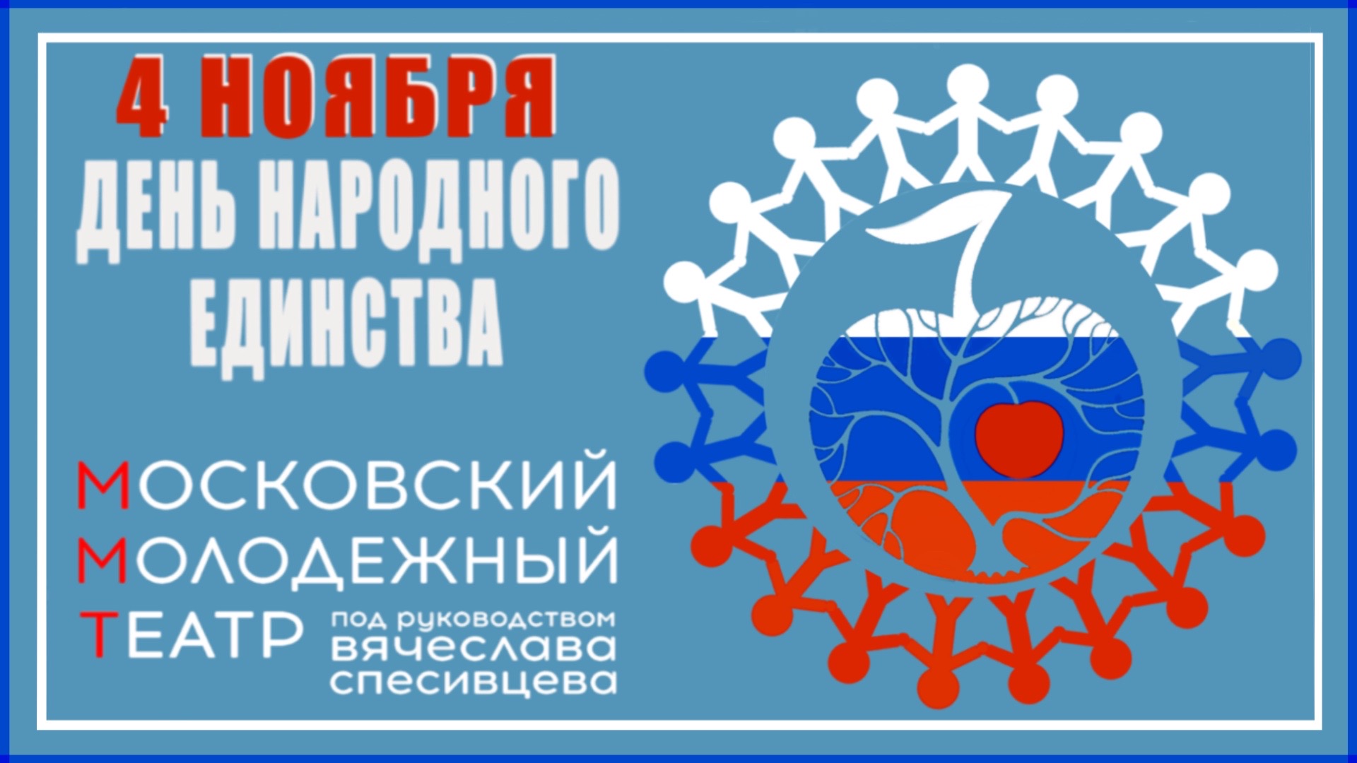 Дорогие зрители, мы сердечно поздравляем Вас с праздником, который так важен для современной России. В разные годы народы, населявшие нашу страну объединяло множество идей. Со временем изменился политический строй. Поменялось время. Но культура всегда была и есть неизменной важнейшей частью, которая консолидировала наше общество. Давайте вместе создавать театр, мы рады, что вы у нас есть!