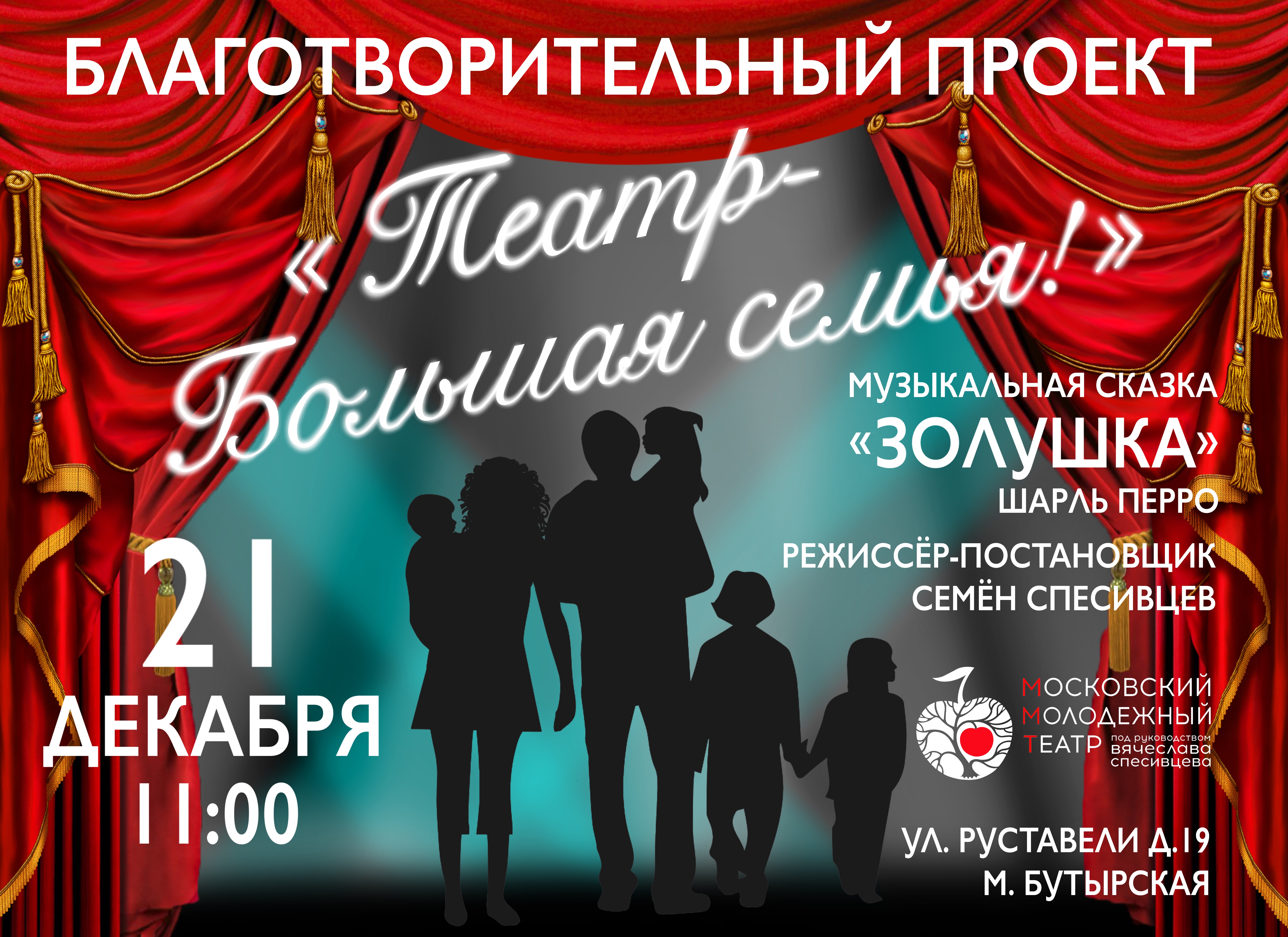 Московский Молодежный театр поздравляет вас с наступающим Новым годом и Рождеством, и желает вам крепкого здоровья и успехов во всех ваших делах. Мы подготовили для вас такую праздничную программу, чтобы никому не было скучно, чтоб все надолго запомнили встречу Нового года в театре Спесивцева! Следите за афишей на сайте театра! Встречайте 2025 год вместе с нами!