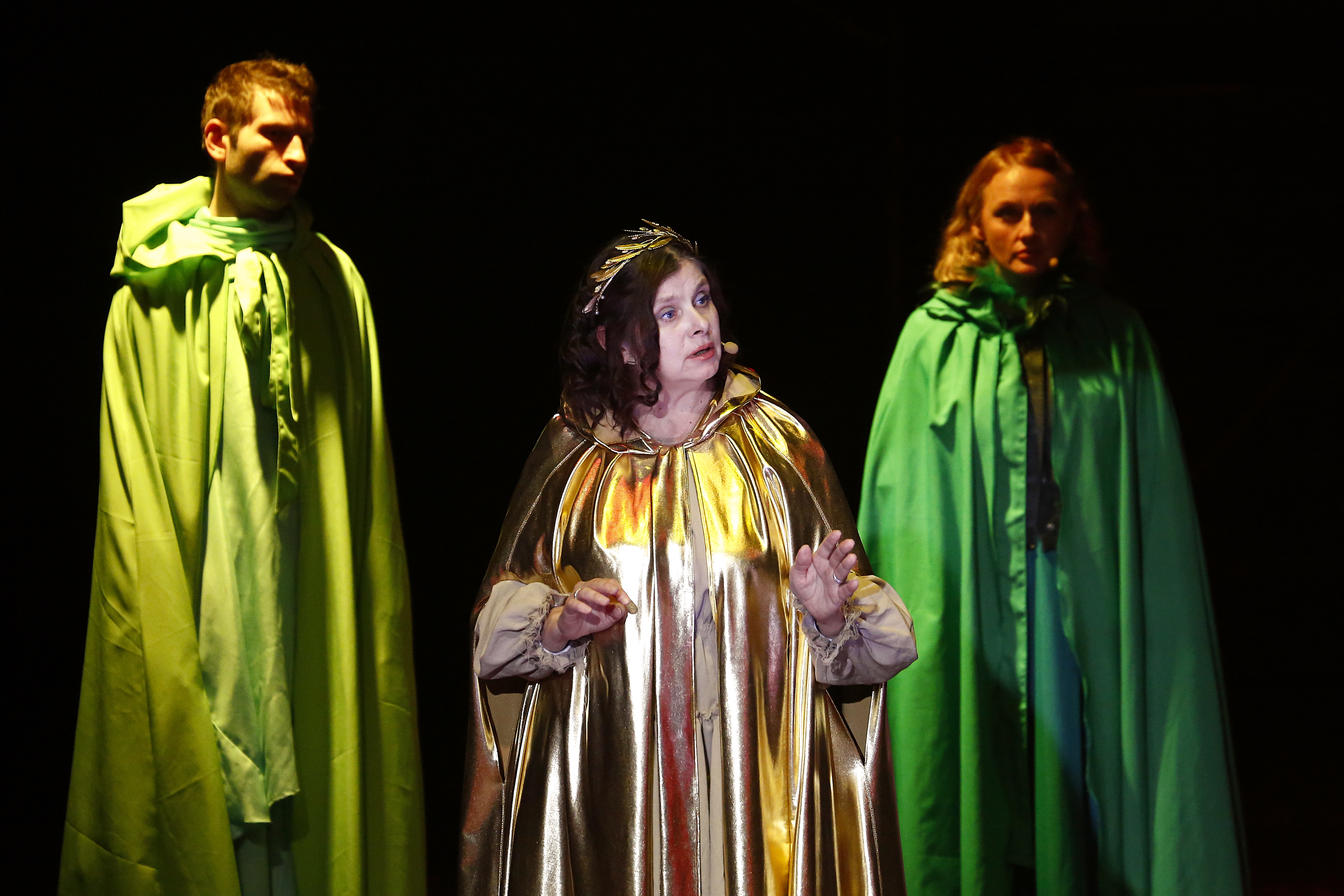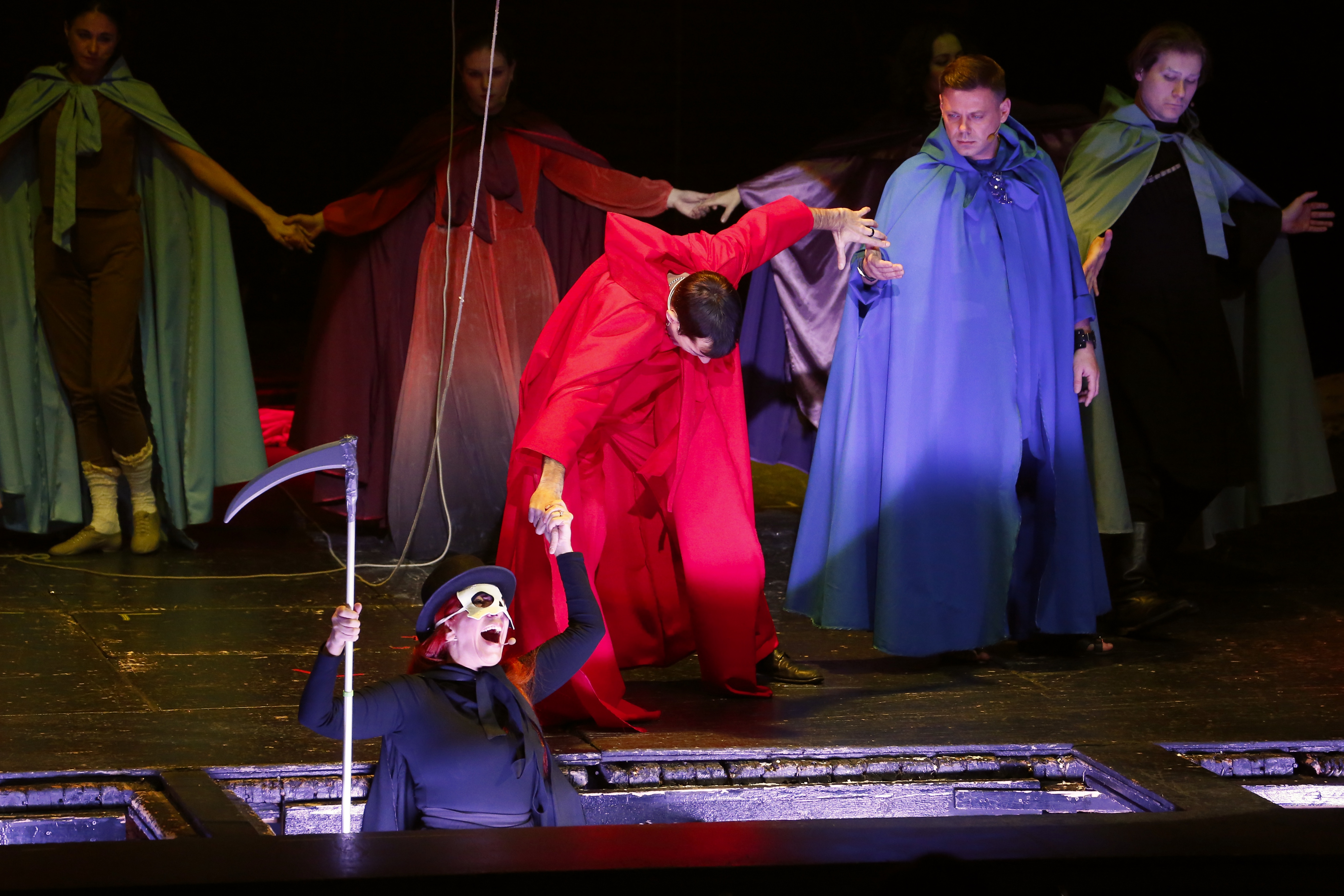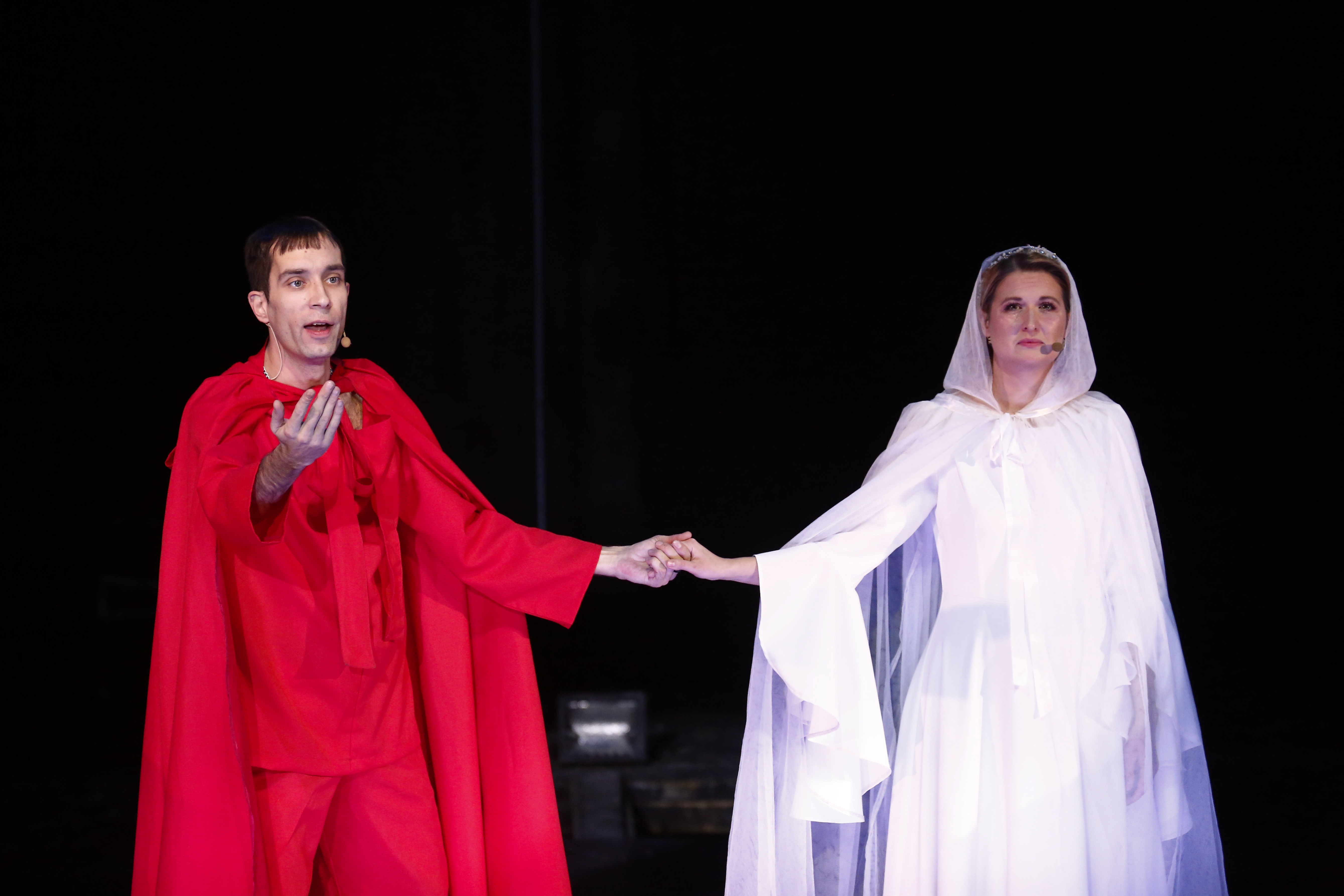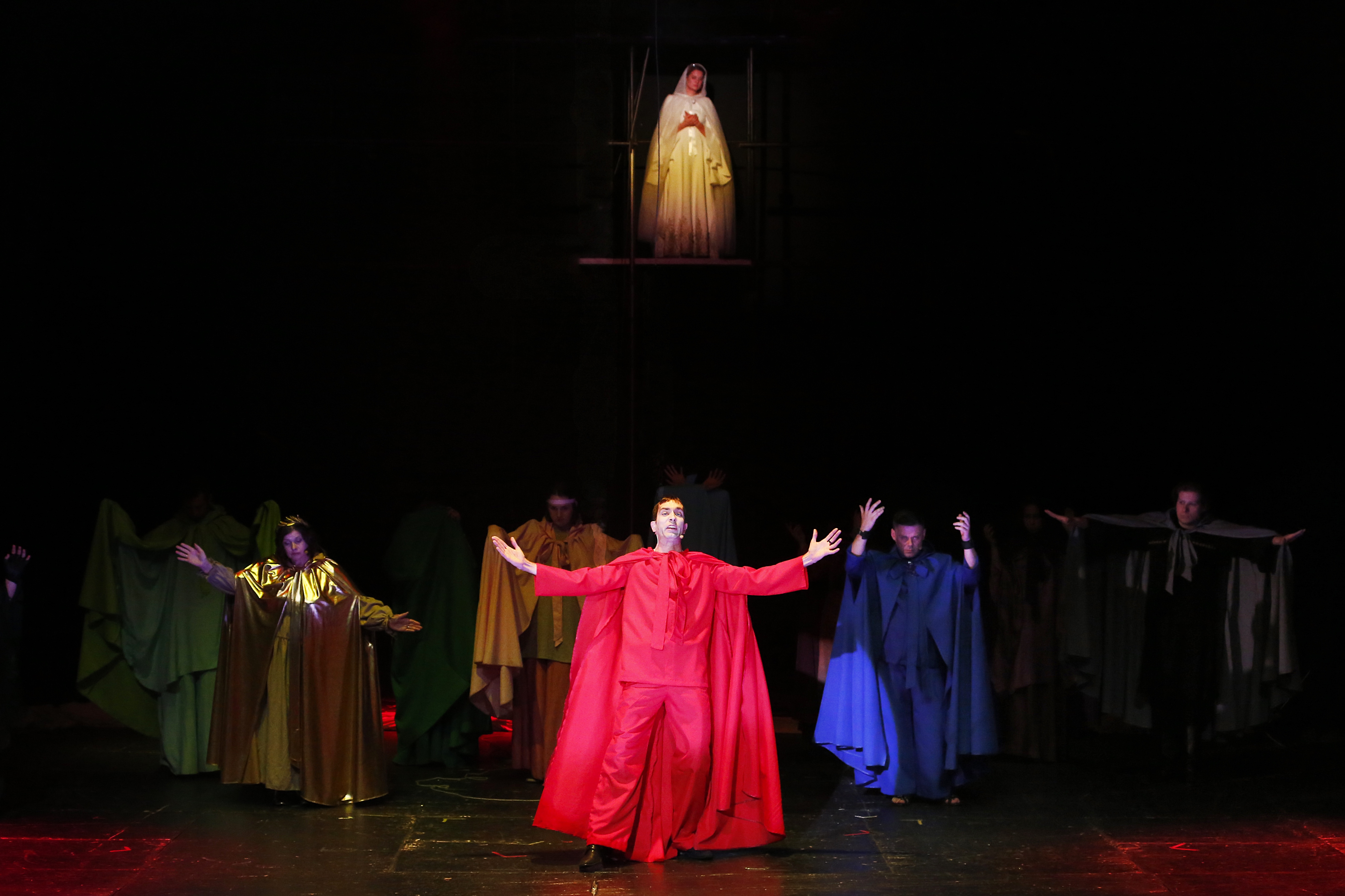 О спектакле рассказывает режиссер Вячеслав Спесивцев: «Спектакль «Божественная комедия» имеет не только культурное и художественное значение, но и воспитательный момент. Все проблемы прошлого, сегодняшнего и особенно молодежного театра в том, что нынешний театр очень вырос – все научились ставить спектакли, заниматься сценой, начали показывать хорошие постановки – уровень прекрасный – по пластике, да по всему! – но для кого это? Поставить-то поставили, а теперь надо решить, кому это все показывать? Может так произойти, что уровень тех, кто играет на сцене, их художественное видение настолько далеки от зрительного зала, что мы потеряем зрителя, он перестанет ходить в театры. Поэтому наш спектакль кажется простым (именно кажется!), когда мы вместе со зрительным залом и артистами фиксируем главные драматургические точки нашей постановки. Поэзия Данте в «Божественной комедии» замешана на детективной ситуации – главный герой ищет свою любовь. Его любовь умерла, и он ее ищет где? – на том свете! Такое мог придумать только Данте Алигьери. И чем мы привлекаем здесь зрительский интерес? – мы вместе с ним начинаем искать эту любовь. Он вместе с нами не только поёт и читает стихи, раскрывает сюжет Данте и… даже сочиняет сюжет. Именно тем и интересно, что вы, зрители, сами участвуете в этом Дантевском разборе, в его походе за любовью, за своим будущим – чтобы не просто сидеть в зале и хрустеть поп-корном, а напрячь свои мозговые извилины и сердце на поиск этой любви. Именно в этом, на мой взгляд, сила нашего спектакля. Приходите, и вместе с нами участвуйте, погружайтесь в эту драматургию – грандиозную, созданную на века вперед. Ее нужно знать! Весь мир читает Данте. Где вы ни спросите, везде вам скажут, что первая книга это – Библия (Коран), еще пару-тройку книг назовут, но обязательно третьей будет книга Данте Алигьери «Божественная комедия». Это воистину божественная поэзия, и наш спектакль про любовь, конечно же, молодежный.